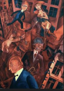 1. Contrast: Look at the figures in the foreground versus the background. How does the artist contrast the “winners” (war profiteers, cabaret dancers) and the “losers” (disabled veterans, beggars) of the Golden Age?